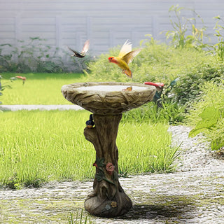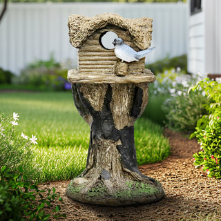 16.5-inch Faux Wood Stump Stool Concrete End Table MgO Accent Side Table Simulation Tree Bark Stand