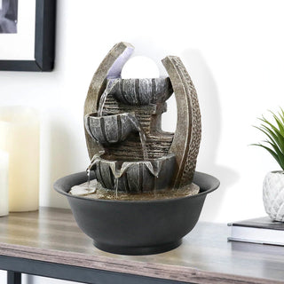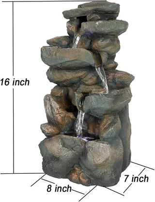17" Cubical Metal Modern Cascading Floor‑Standing Fountain with Warm LED