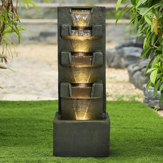 40-inch Tall 4-tier Indoor/Outdoor Large Water Fountain with Pump & Warm White Light