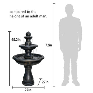 30.7-inch Tall Concrete Red Modern Jar Cascading Water Fountain with Lights and Pump