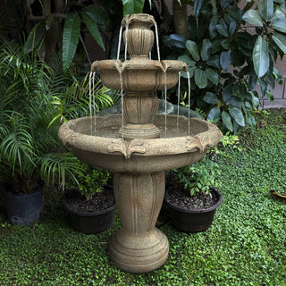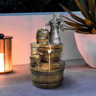 30.7-inch Tall Concrete Green Modern Jar Cascading Water Fountain with Lights and Pump